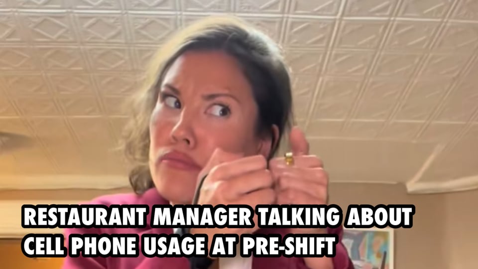 RESTAURANT MANAGER TALKING ABOUT CELL PHONE USAGE DURING PRE-SHIFT