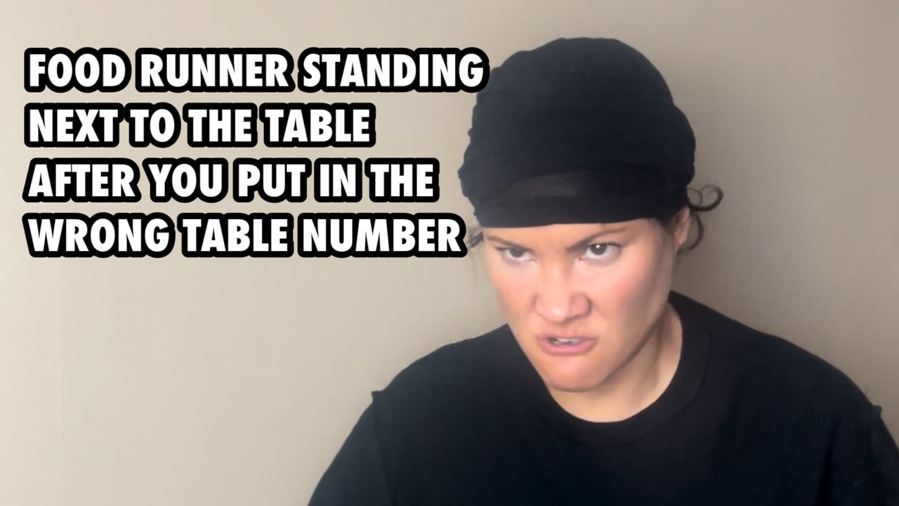 THE FOOD RUNNER WAITING FOR YOU NEXT TO THE TABLE AFTER YOU PUT IN THE WRONG TABLE NUMBER